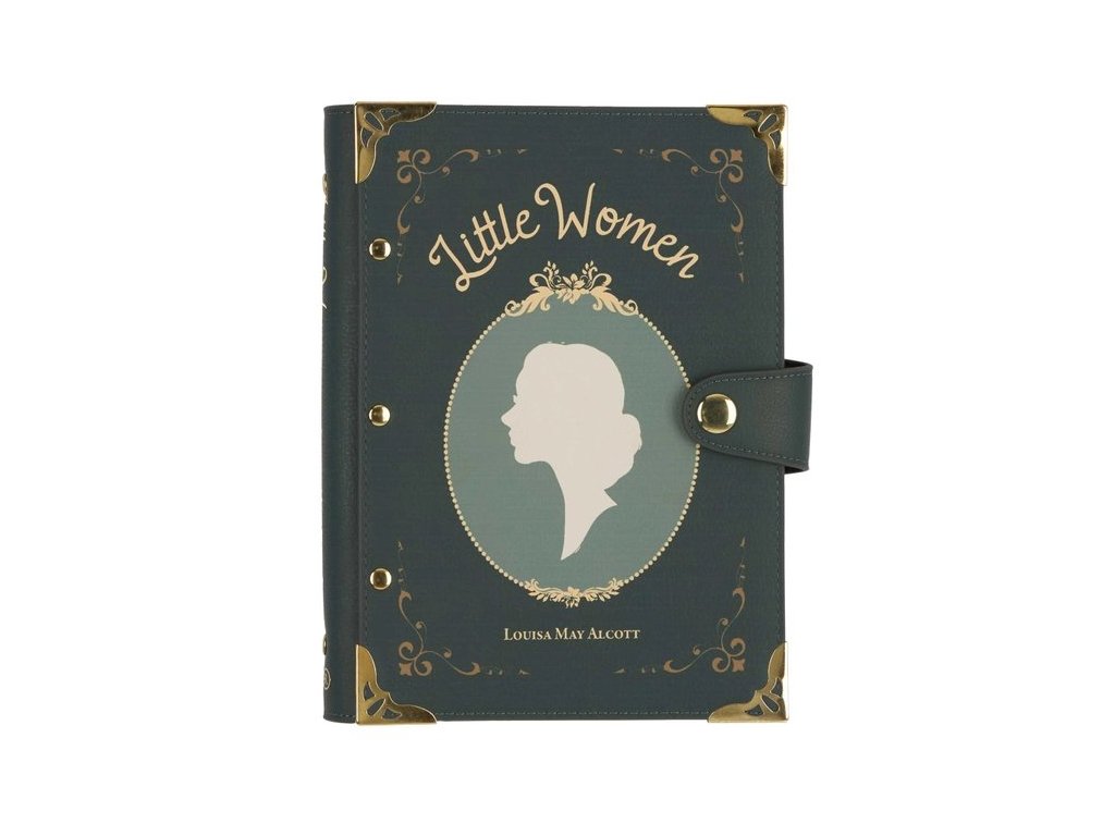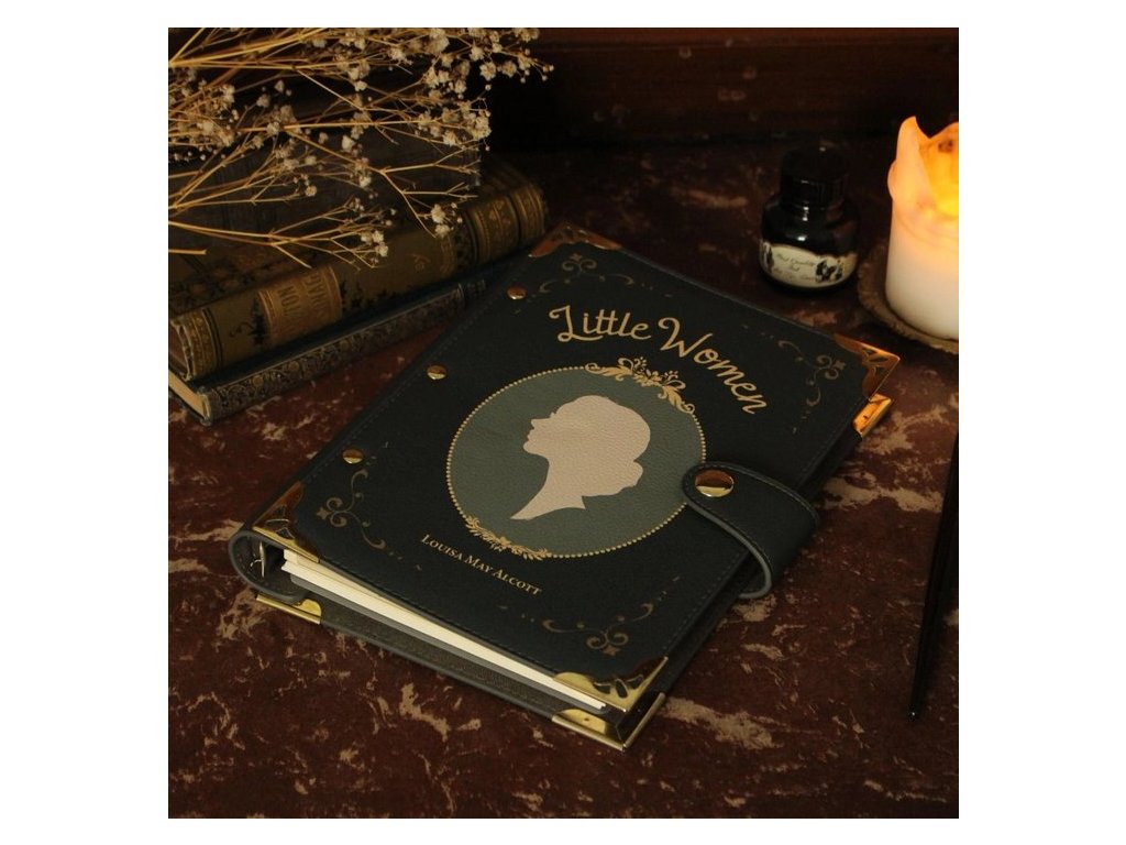 Praktický kroužkový zápisník s vyměnitelnými listy papíru s motivem románu Malé ženy od Louisy May Ascott, tmavě zelený