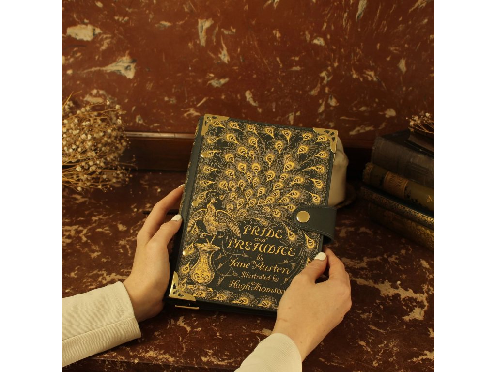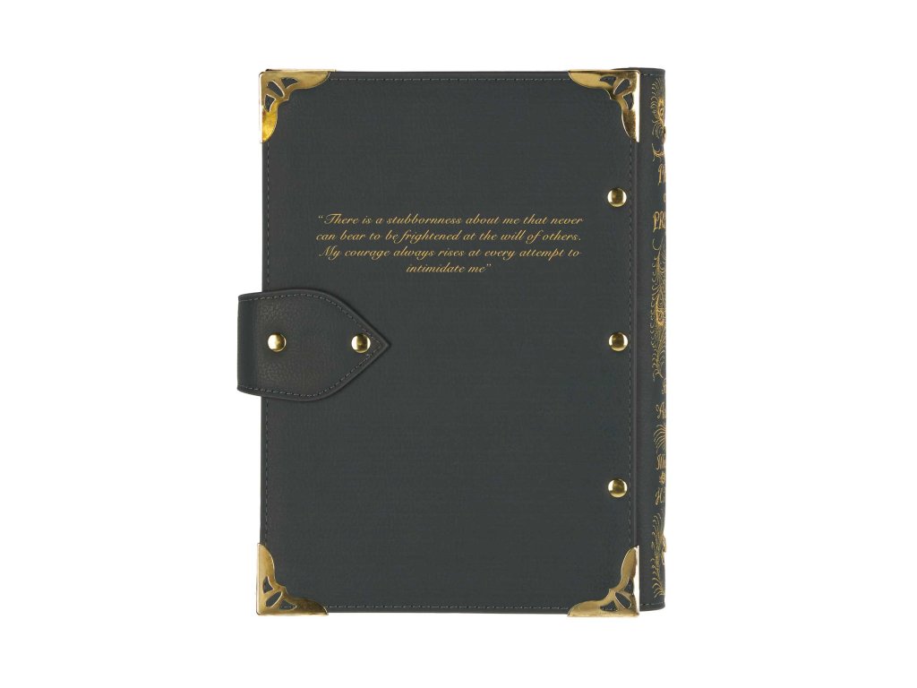 Zamilujte se do tohoto nádherně zpracovaného zápisníku s kroužkovou vazbou z umělé kůže, pro milovnice klasického románu Jane Austin s originální obálkou z roku 1813 od Hugha Thomsona. Na zadní straně je ikonický výrok Elisabeth Bennetové, jejíž síla a odvaha z ní činí jednu z nejslavnějších ženských literárních hrdinek vůbec